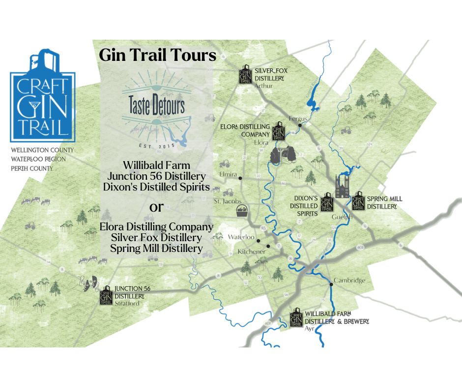 We’re riffing on the brilliant Craft Gin Trail, which invites you to explore up to six different distilleries located in Waterloo Region, Perth County, and Wellington County in Southwest Ontario. You can certainly enjoy an excursion on your own but we’d like to invite you along with us for the ride. We’ll take care of all the details for you.